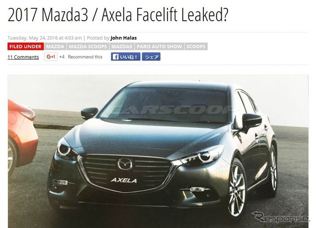 同メディアの読者から投稿されたという改良新型アクセラのリーク画像を公開している。