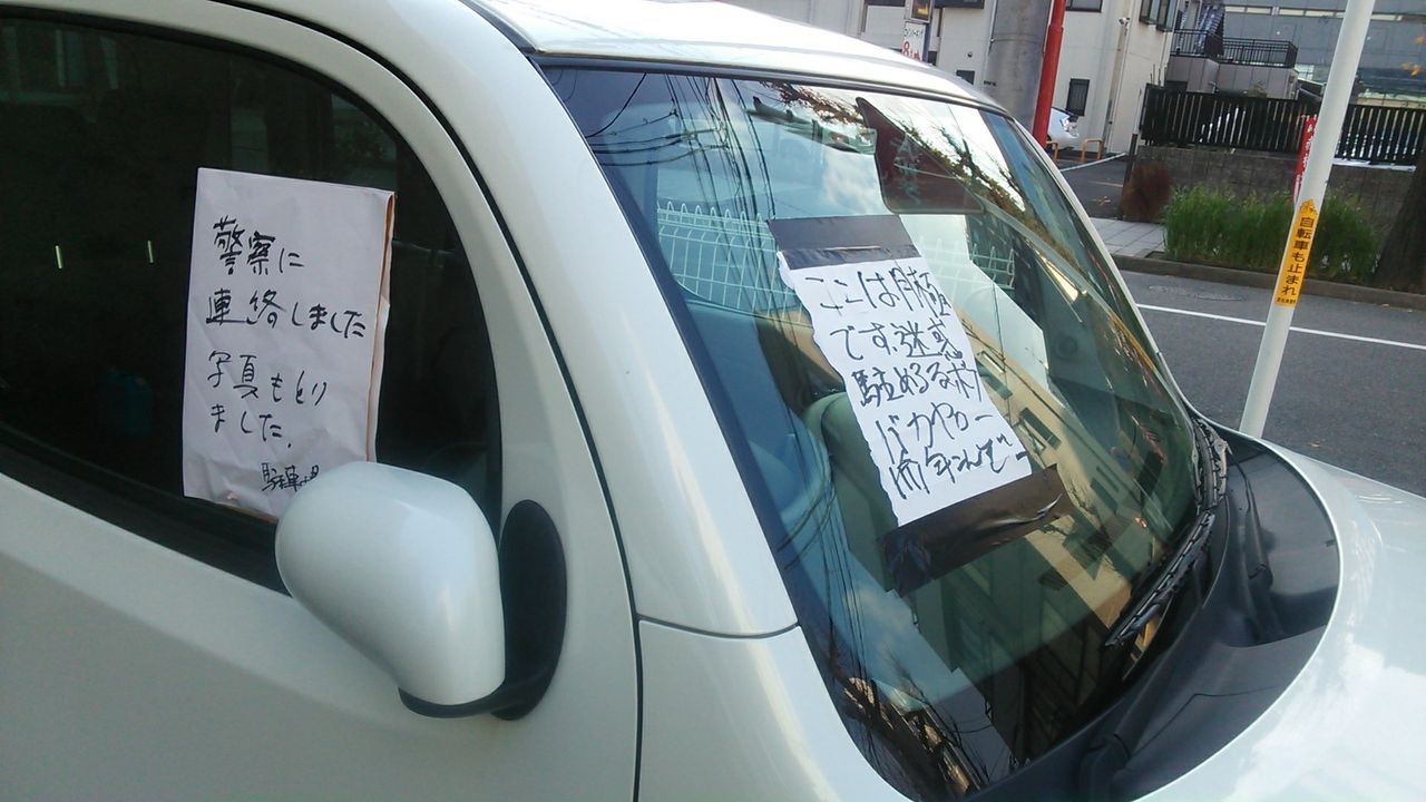 タイヤロックと剥がしやすい張り紙までで良いのに、器物損壊で揉めるようなことするとか理性のないただの猿やん