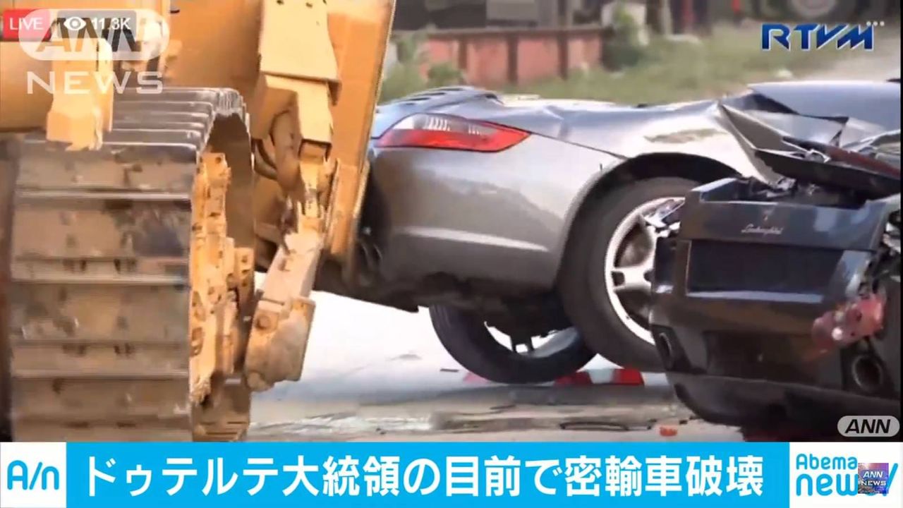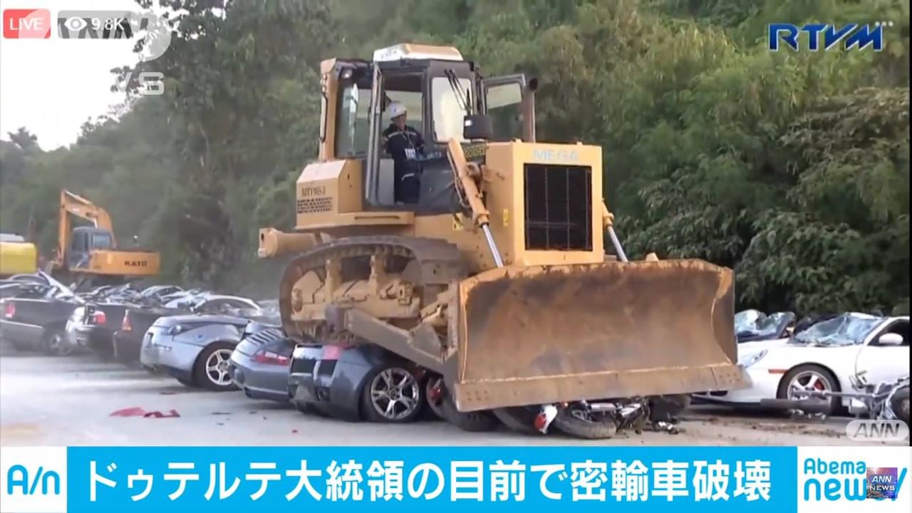 ヘルメットをかぶったドゥテルテ大統領が見守るなか、並べられた高級車やバイクにブルドーザーが乗り上げて次々に破壊していきます。フィリピン政府は30日、 北東部のアイリーン港で、違法な輸入を撲滅するキャンぺーンとして密輸業者から押収した高級車両を破壊するイベントを行いました。地元のメディアによりますと、 壊されたのはハーレーダビッドソンのバイクやベンツやランボルギーニ、ポルシェなどの高級車約80台で、日本円で約6億円相当になるということです。