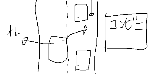 歩いてる状態で丁字路に突き当たるとするでしょ