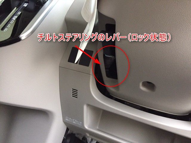 ハンドルのしたに、運転する人によって高さを変えられるレバーがある