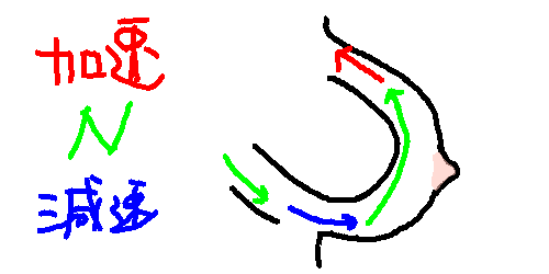 乳首辺りから加速し出さないと曲線抵抗で相当速度が落ちるぞ