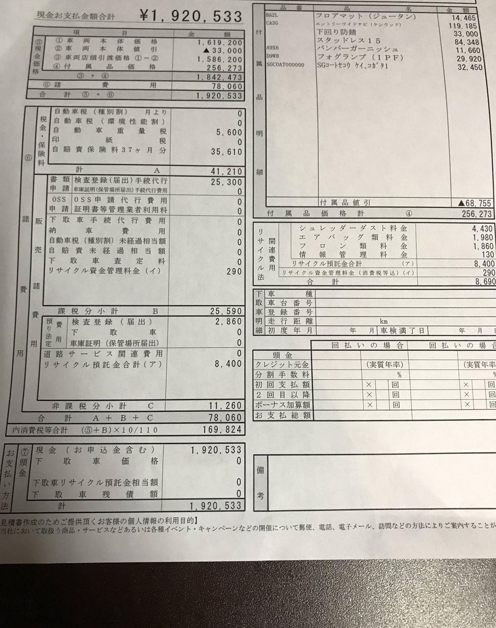 値引きできませんか?って聞いたらオプション割引きしてくれたけどそれでもこの値段や