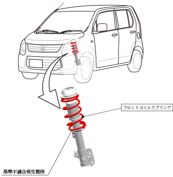 フロントサスペンションにおいて、コイルスプリングの鋼材に対する塗料の密着性が不足しているため、砂や小石を噛み込んだ場合に、塗膜が剥がれやすく、腐食が早期に進行するものがあります。