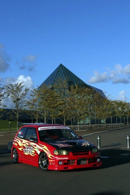 古いクルマはタイヤが小さいけど、車体が薄いせいでちょっといじるとイイ感じに。