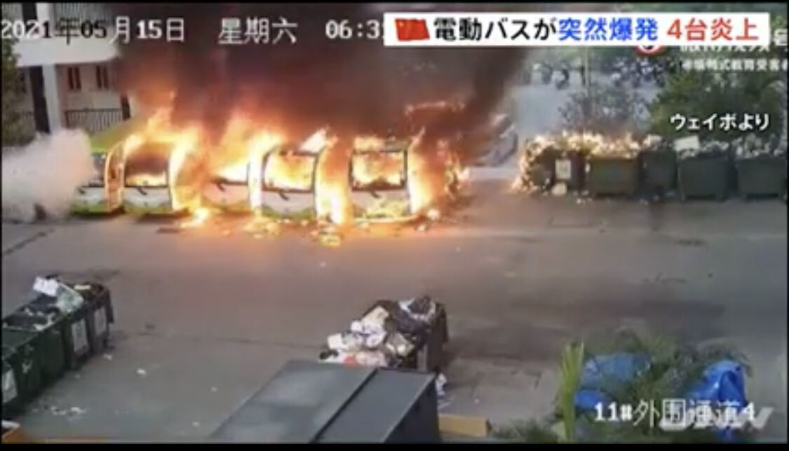2021年5月、広西チワン族自治区にある大学で電動バスが何故か爆発大炎上