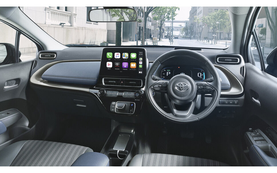 またボックスティッシュなどを収納できる助手席アッパーボックスや、センターコンソールには充電ケーブルをスッキリ格納できるスライド式トレイを採用し、便利でスマートな収納を実現。さらに、操作性・視認性に優れた10.5インチ大型ディスプレイオーディオをトヨタコンパクトカーとして初採用(Zに標準装備、Gにメーカーオプション)している。