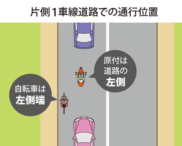 なんなら歩道走ってるのにわざわざセンターライン越えて追い越してくから、対向車とかいなけりゃ道交法なんて守らなくて良いんかと思うくらいや