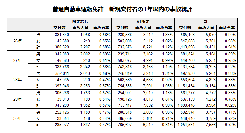 これは乗ってる車関係なく持っている免許での統計結果でAT限の人は普通免許より最大で3倍事故率が高いというお話なのに