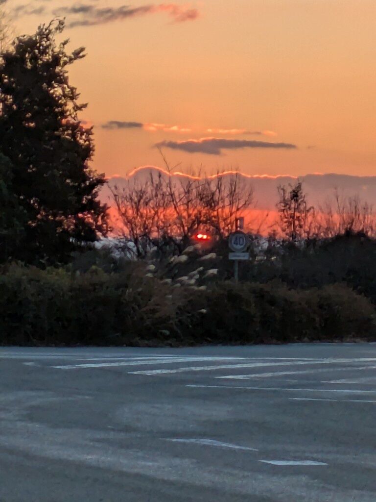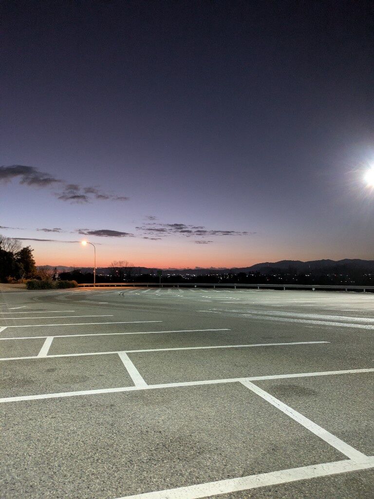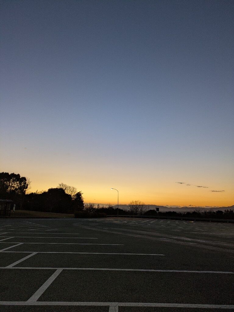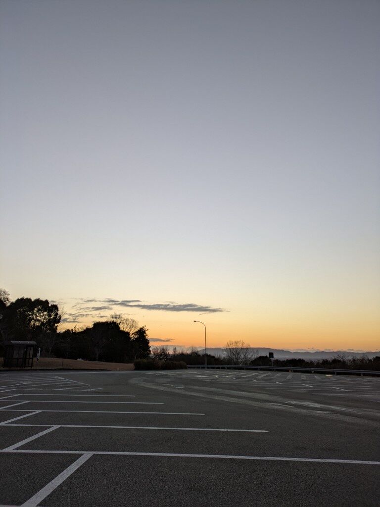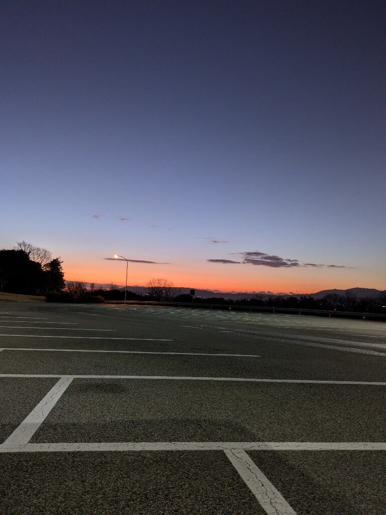 綺麗な朝焼けと静かな駐車場ええな