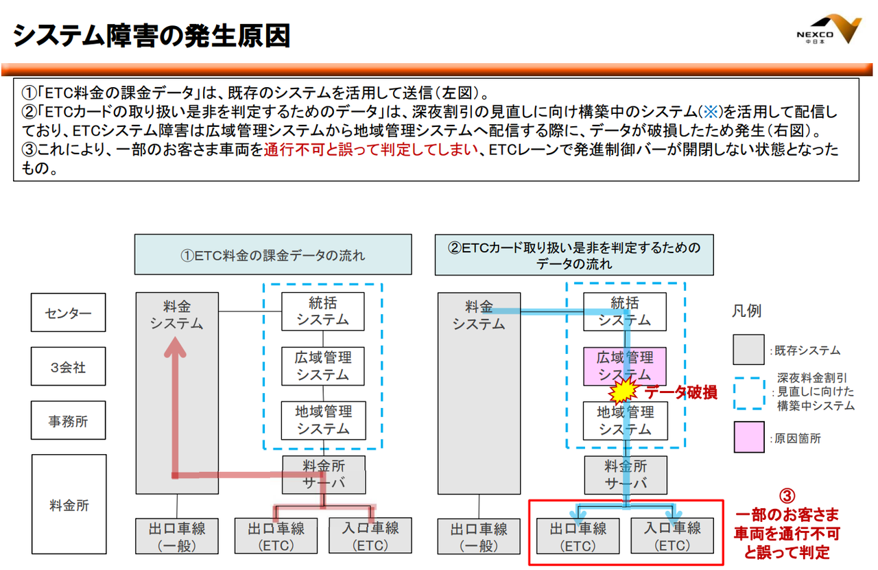 人為的ミスによるNEXCOの責任を回避しようと、「データ破損が原因」というのは良くない