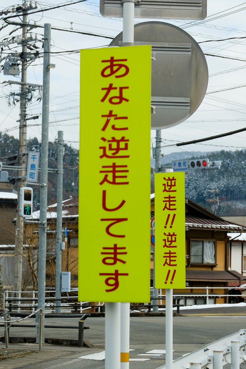 むしろ、本来の向きで見る看板の裏にどでかい人間の目の画像を貼って逆走してます!とか書けば良いんじゃないかな