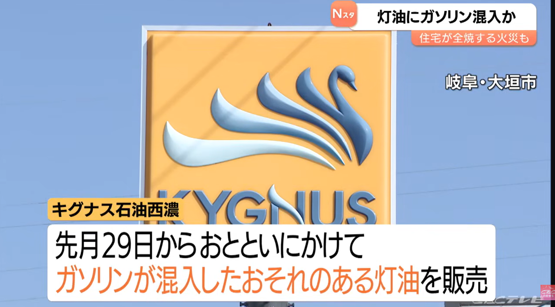 「キグナス石油西濃」で1月29日から2月13日にかけて販売された灯油にガソリンが混入していたおそれがある。9日に住宅が全焼する火事があり、火元となったファンヒーターの灯油にガソリンが含まれていたという。 pic.twitter.com/hM0kFavB6K【緊急情報】ガソリンが混入したおそれのある灯油を販売した事案が発生しました。