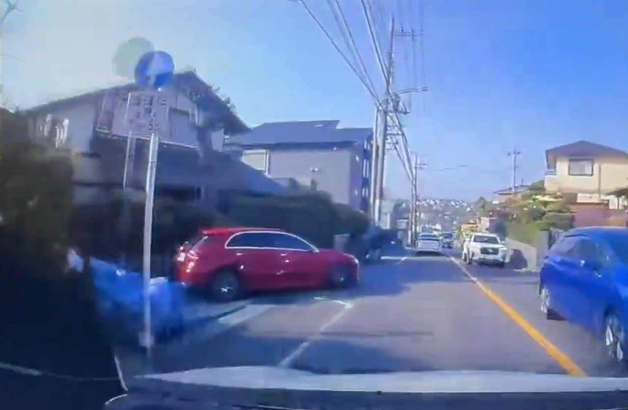 分かりにくいかもしれませんが、じわじわ動いて出てきていたので危険を感じクラクションを鳴らしました