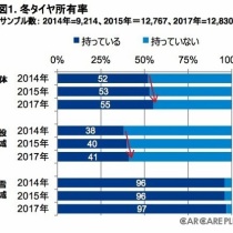 1: 2017/09/05(火) 14:27:35.05 ID:Gqodyv3X0 BE:155743237-PLT(12000) ポイント特典 冬タイヤの所有率が上昇! いまどきの冬タイヤの購買傾向 2017年9月5日(火) 13時00分 冬タイヤと言えば、降雪地域の自動車ユーザーにとっては必需品だが、非降雪地域でも、 ここ ...