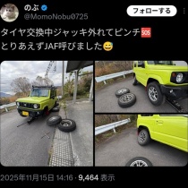 ■Xより 鍵掛かっちゃったので pic.twitter.com/tahZDNh6MJ— ろいち (@RoichiD21) November 16, 2025 どんな無茶したらそうなるんだ?と思って画像よく見たら…ジャッキアップ前に全車輪のホイールナット外してるやんけ https://t.co/CrfOiv3IZE pic.twitte ...