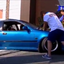 【動画】DQNさん、タイヤを八の字にし限界まで車高を下げた車で段差に引っかかり進めなくなる